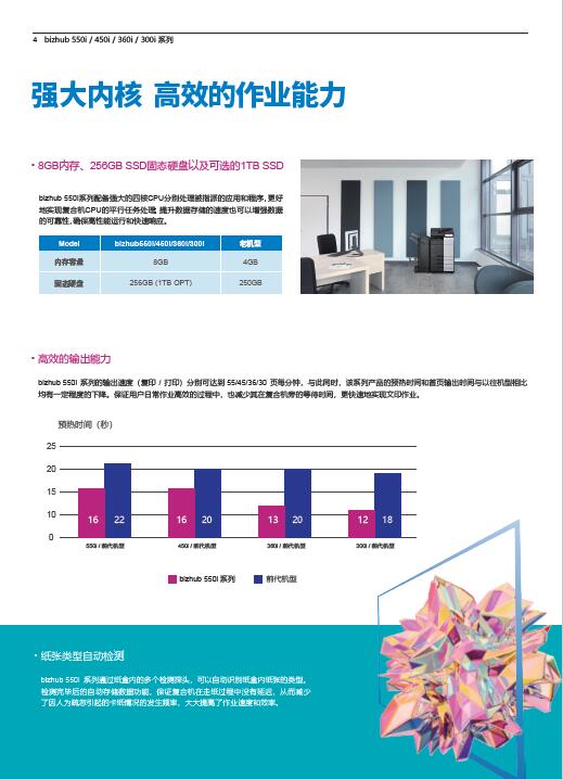 高端配置,满足多样化需求:标准自动输稿器;重叠进稿检测;电子纠偏功能;丰富的选购纸盒