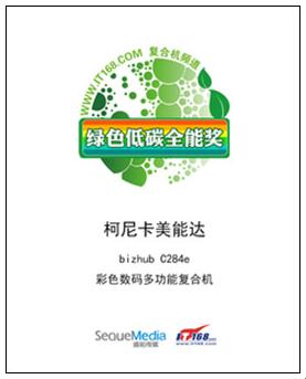 柯尼卡美能达bizhub C284e荣获IT168"绿色低碳全能奖"