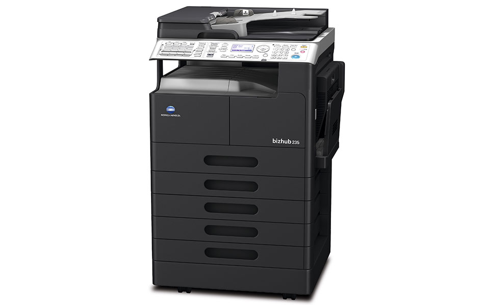 柯尼卡美能达235黑白复印机支持复印/打印/扫描/传真功能,最大原稿尺寸A3,预热时间15秒,首页复印时间6.5秒,复印速度23cpm,复印分辨率600×600dpi,复印尺寸A3-A5,支持连续复印页数1-999页,缩放范围25-400%(以1%为单位);打印速度23ppm,打印分辨率600×600dpi;扫描速度黑白46页/分钟(在300dpi的情况下) 彩色:20页/分钟(在150dpi的情况下);内存容量128MB,最大容量5个通用纸盒5×250页+多功能手送托盘100页;标配双面器,可帮助大型企业完成超强负荷的日印量。
